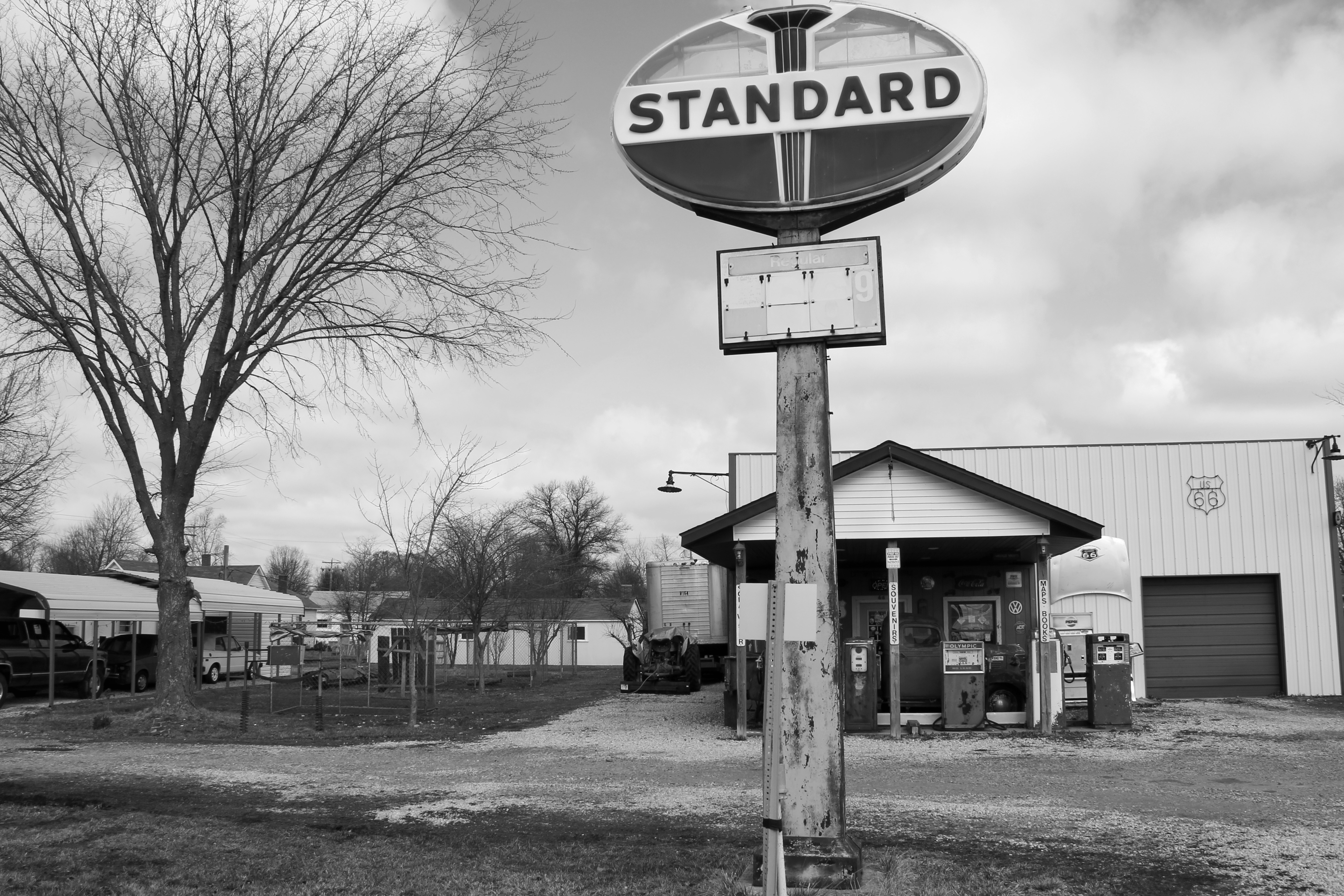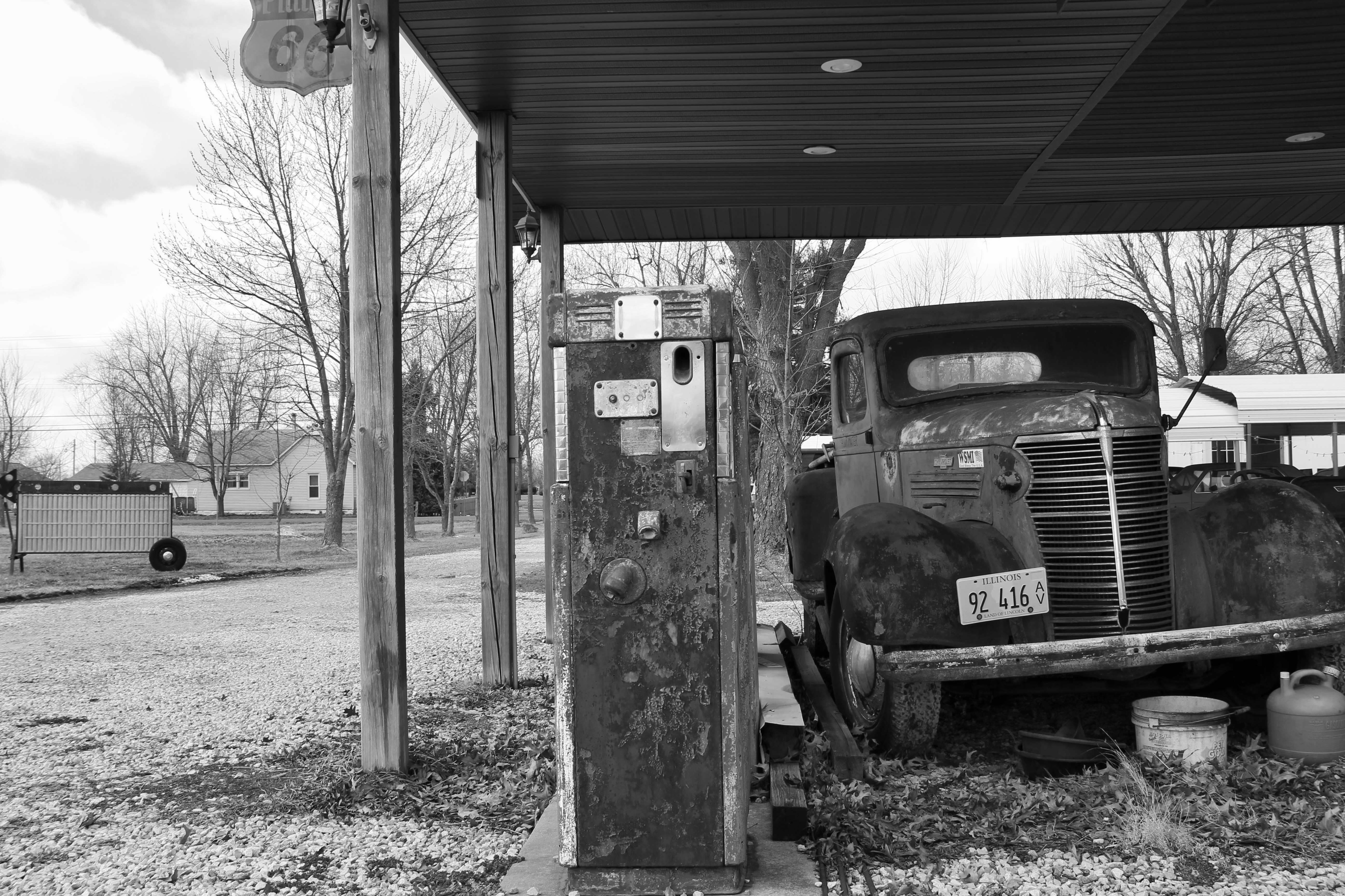 Quite possible the best, but certainly the most unexpected, find on last March’s Illinois/Missouri/Iowa trip, I completely stumbled upon this by (lucky) accident. Staunton, about 40 miles north of St. Louis wasn’t on my schedule at all, but I decided to check the town out on my way from Lincoln, IL to Belleville, IL. After driving and walking around the town for a bit, I saw that Route 66 led through here once and of course I had to check it out and drive on it for a short way.